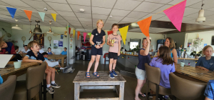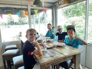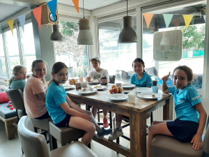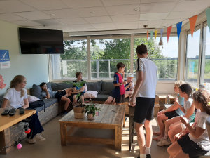 Zaterdagavond werd er enthousiast levend stratego gespeeld en een popquiz gehouden. Na een kort nachtje stonden de eerste vroege vogels om 5:15 uur alweer op de baan!