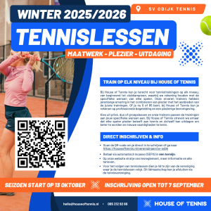 Wil jij starten met tennislessen? Bij House of Tennis maken we het eenvoudig voor je, ongeacht of je direct wilt beginnen of alvast wilt plannen voor het nieuwe seizoen. Wil je zeker zijn van je plek in het komende seizoen? Schrijf je hier in