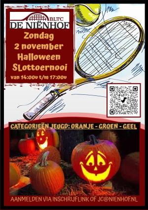 Alle jeugdleden van SV Odijk Tennis worden van harte uitgenodigd mee te doen aan het Halloweentoernooi op tennispark BLTC de Niënhof op zondag 2 november van 14:00 uur t/m 17:00 uur.