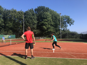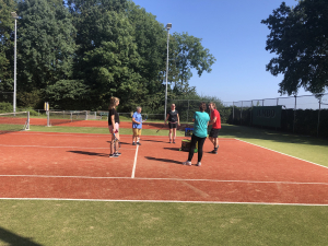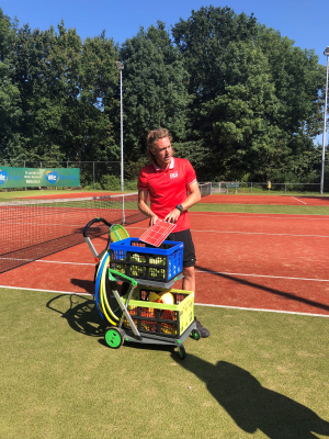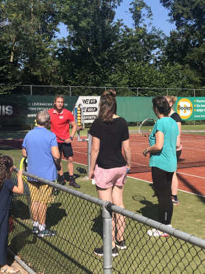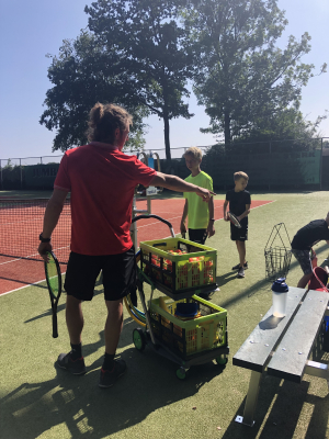 Op deze zonnige middag begon Rick Sebok om 13.00 uur aan zijn proefles voor junioren. De kinderen werden in groepjes verdeeld en kregen al snel de eerste balvaardigheidstestjes. Bal opgooien en vangen, bal laten stuiteren en vangen en daarna kwam dan ook het racket erbij en werden er diverse balletjes geslagen. Ze waren allemaal enthousiast en vonden het heerlijk om met elkaar buiten te sporten.