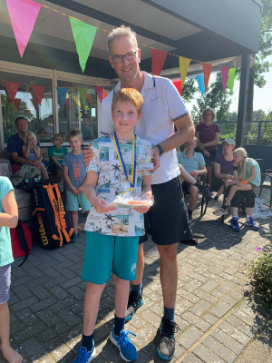 Afgelopen zondag was het familiedag bij onze club. De ochtend was druk bezet door kids uit rode, oranje of groene bal die in duo met hun vader of moeder tegen elkaar streden. Het was spannend, leuk en heel gezellig! ‘s Middags speelden spelers met de gele bal. Samen met hun vader, moeder, oom, oma of broer werd er in het stralende zonnetje gestreden om de eerste plek. Het zonnetje was gisteren in een opperbeste stemming en bracht zijn vrolijkheid over op alle aanwezigen. Wat een topdag!
