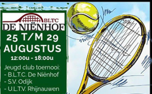 Van maandag 25 augustus t/m 29 augustus start de leukste tennisweek voor de jeugd op het mooie tennispark van Tennisvereniging BLTC De Niënhof te Bunnik. Ook jeugdleden van SV Odijk Tennis mogen hieraan meedoen.