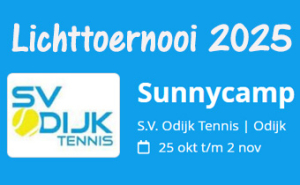 Ook dit jaar organiseert SV Odijk Tennis het Sunny Camp Lichttoernooi. Dit toernooi zal plaatsvinden van zaterdag 25 oktober t/m zondag 2 november 2025.